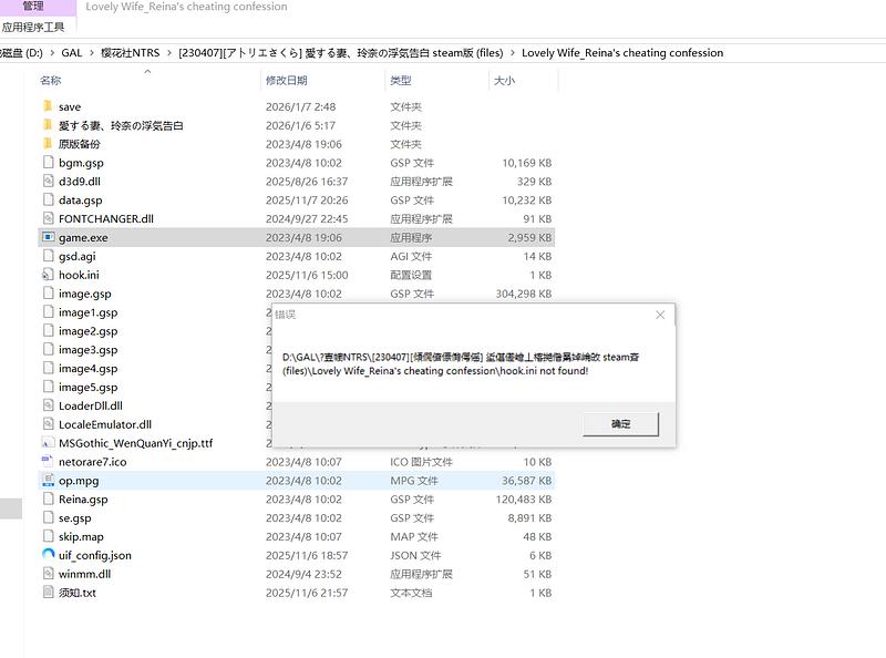 你看到你这个路径里面的那些问号了吗,说明不支持,你就要改,其实玩gal最好不要有中文路径